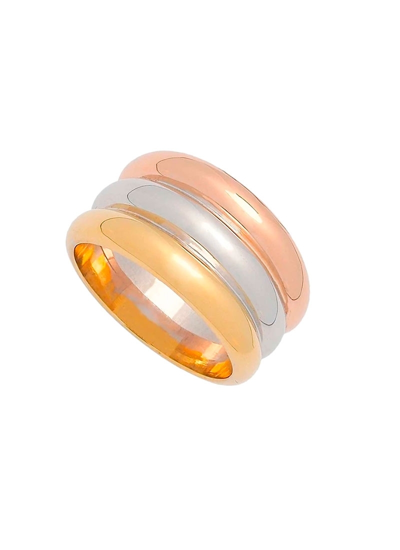 Anillo de oro tricolor de 18Kt, tres franjas de color amarillo, blanco y rosa.