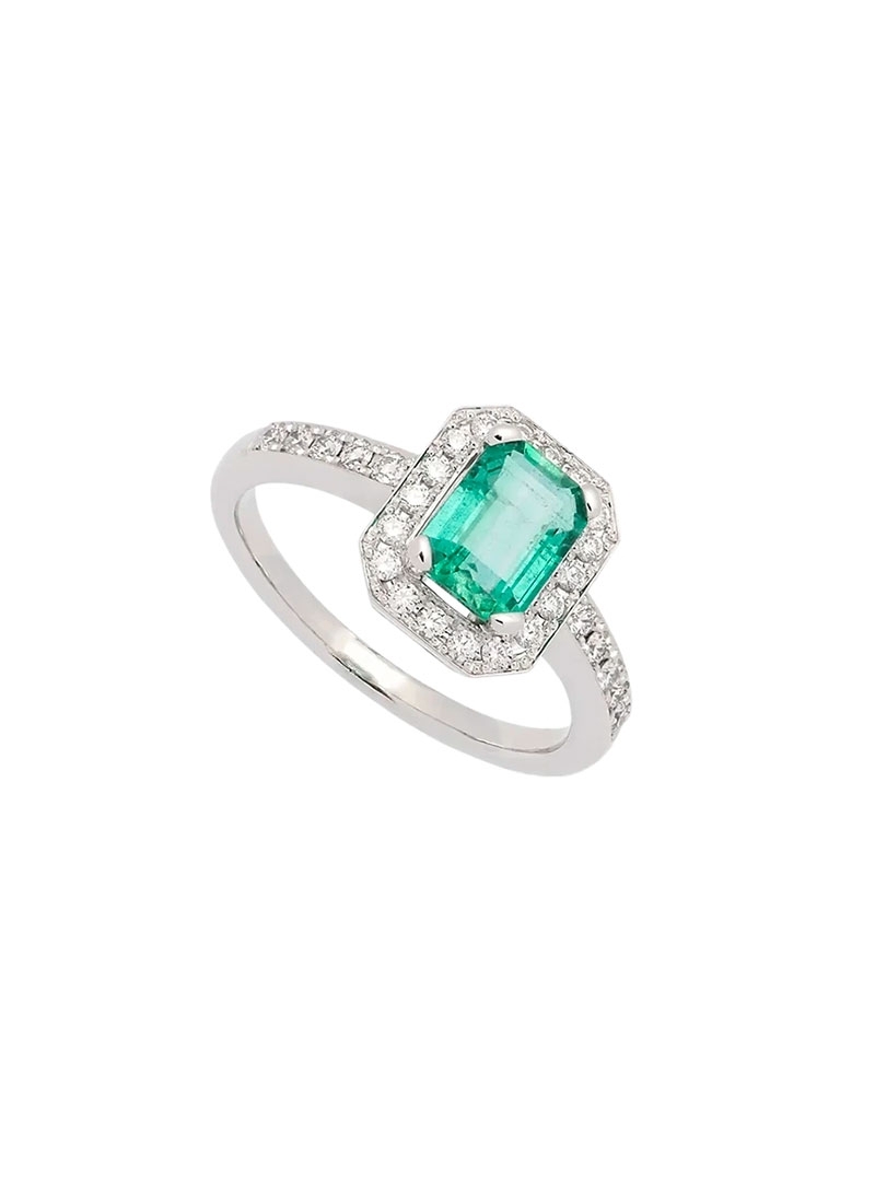 Anillo de esmeralda con orla de diamantes
