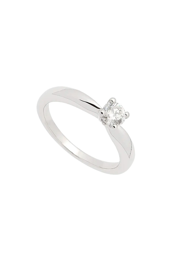 Anillo de oro blanco de 18Kt, solitario con piedra de 0,45ct, montado con 4 garras, con certificado GIA color H, pureza VS1, talla, pulido y simetría excelentes.