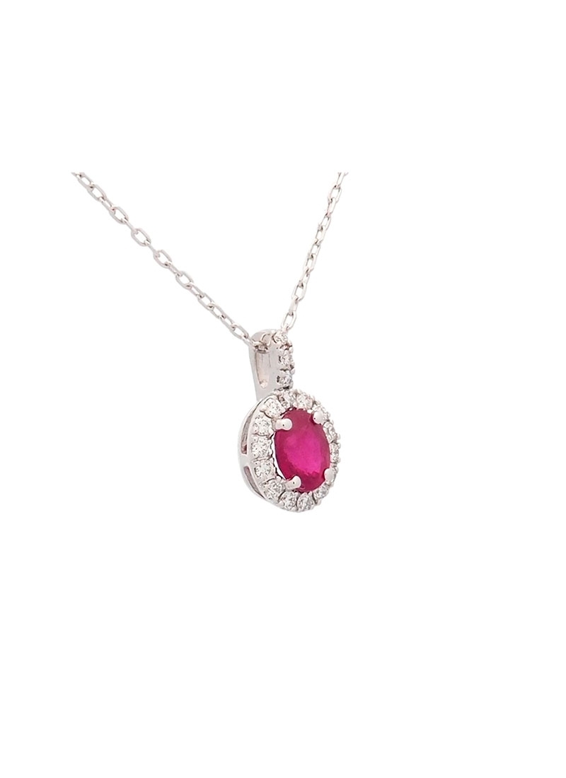 Colgante con cadena forxat de oro blanco, rubí y diamantes