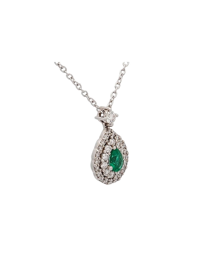 Colgante oro blanco con doble orla de brillantes con esmeralda