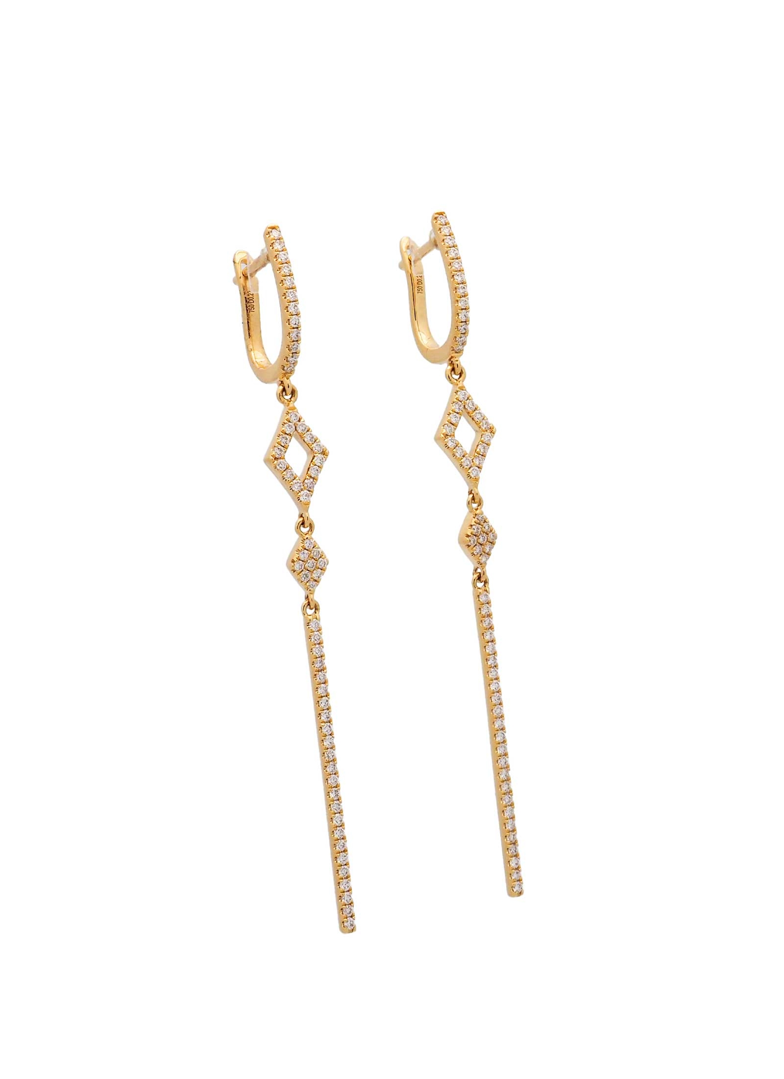 Pendientes largos de oro amarillo de 18Kt y diamantes talla brillante, con un peso total de 0,43ct, calidad H VS.