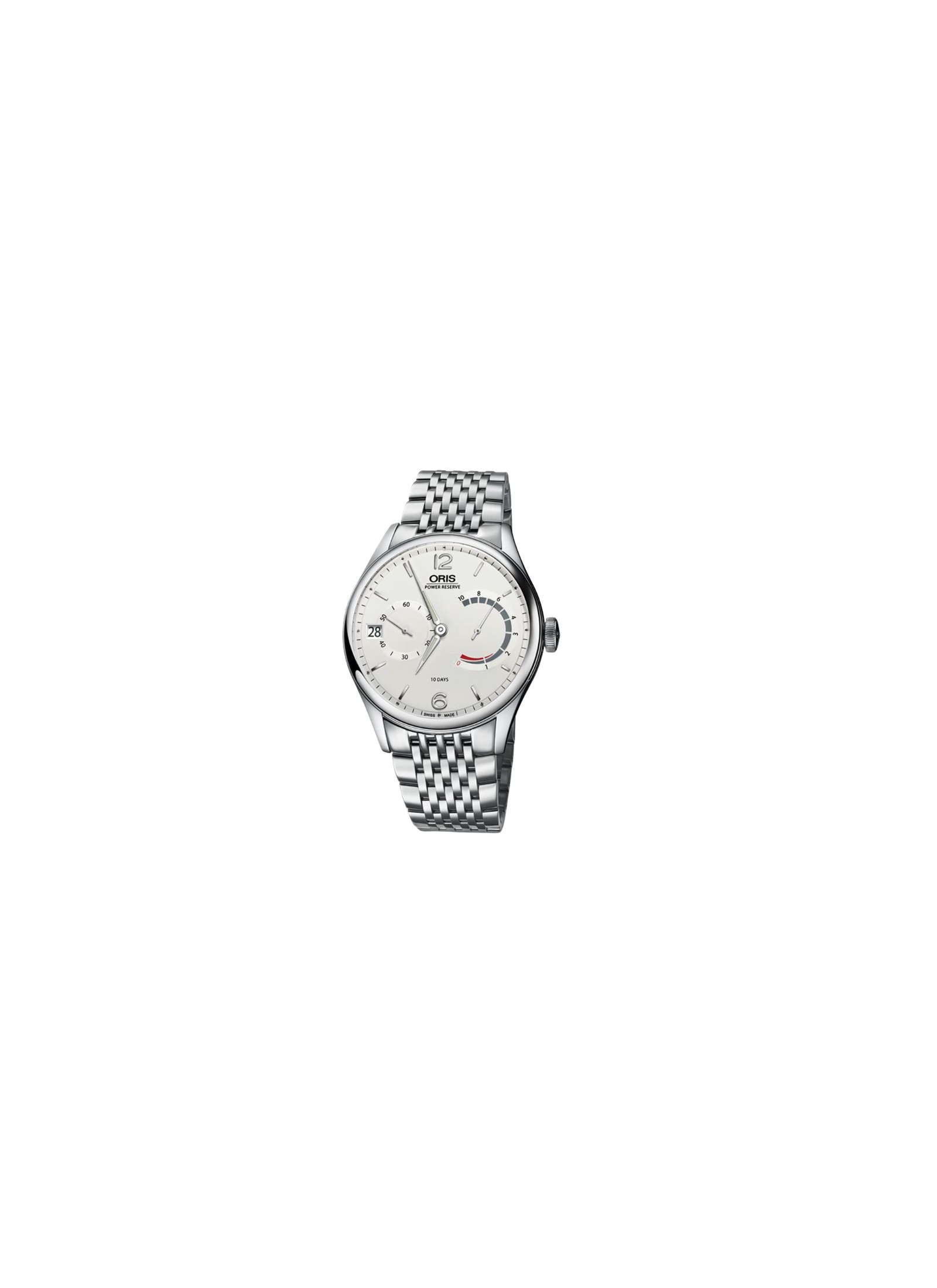El Oris Artelier Calibre 111 es un reloj automático con caja de acero de 43 mm con esfera plateada, indicación de 10 días de reserva de marcha, segundero y fecha, cristal de zafiro y brazalete multipieza de acero con doble cierre desplegable